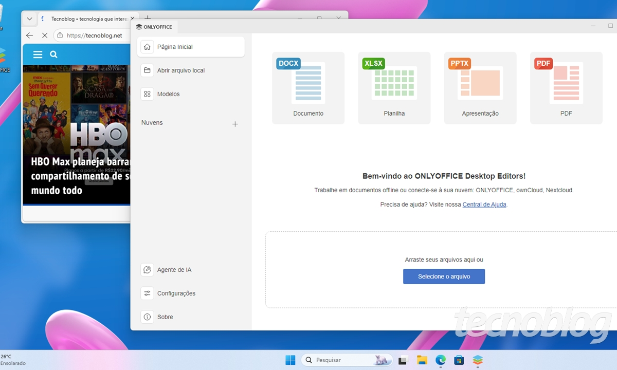 O pacote é focado em execução a partir de servidores. Mas é possível rodá-lo de modo local. Basta baixar o OnlyOffice 9.3 Desktop Editors, a variação que pode ser instalada em seu computador. Há versões para Windows, macOS e distribuições Linux.